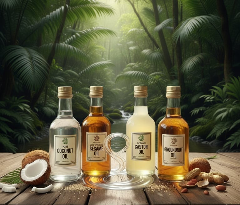We bring you the finest coconut, sesame, castor oils and groundnut oil, crafted with care for your health and home.We source our ingredients directly from farms, ensuring they are free from harmful chemicals, additives, and compromises. All these oils produced in hygeneic manner.Our coconut oil, sesame oil and castor oil can be used for both cooking and hair care.